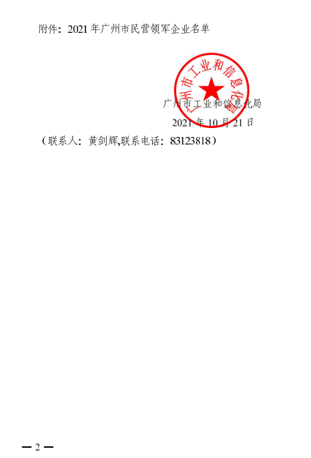 經(jīng)履行有關(guān)程序,2021年民營領(lǐng)軍企業(yè)名單已公示結(jié)束,我司榮獲廣州市2021年民營領(lǐng)軍企業(yè)稱號。