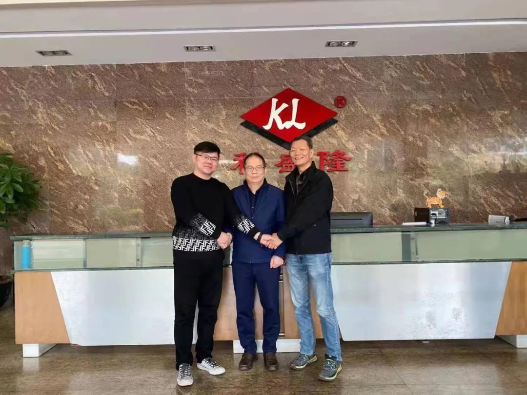 ▲廣州科盛隆紙箱包裝機械有限公司董事長何國勝先生(中間)、廣州科盛隆紙箱包裝機械有限公司總經(jīng)理徐兆玉先生(右)、Corrface全瓦通CEO羅旭峰先生(左)