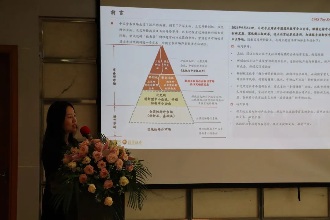 招商銀行廣州分行新動能專員林小易與招商證券投資銀行總部董事胡龍嬌,分別就“專精特新”專項金融政策與北交所新政解讀及創(chuàng)新企業(yè)IPO路徑選擇展開詳細介紹,參會人員紛紛表示,本次活動宣講內(nèi)容干貨滿滿,獲益匪淺。